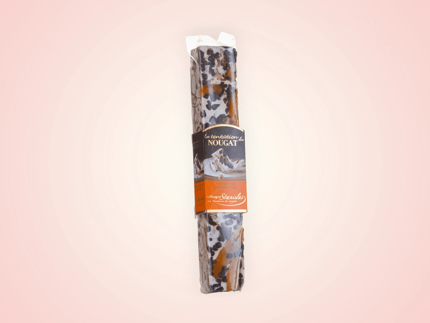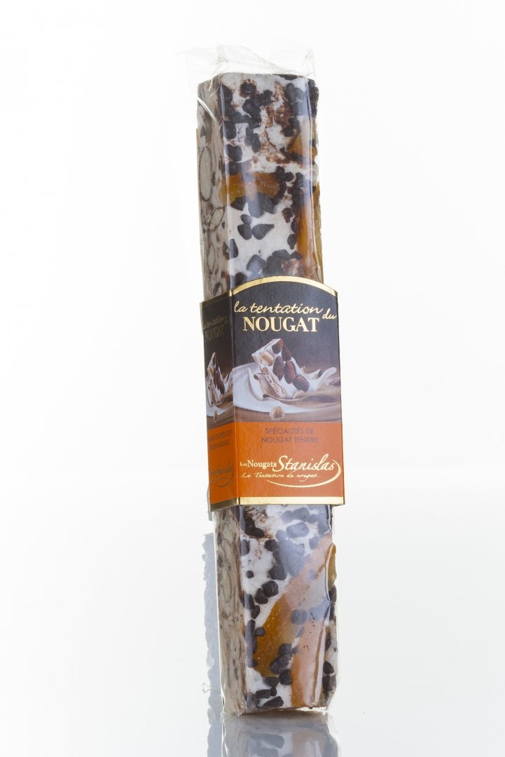 Retour NOUGAT CHOCOLAT ORANGETTES barre 100G NOUGAT CHOCOLAT ORANGETTES barre 100G Conditionnement barre de nougat 100g Prix 5,50€ 55,00 €/kg Disponibilité En stock Qté Ajouter au panier Ingrédients : Date limite de consommation : 18 mois