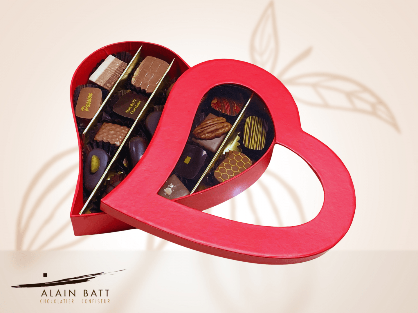 Ce coeur contenant 300g de chocolats assortis fera chavirer de plaisir l'âme des esthètes alléchés et des gourmets raffinés...